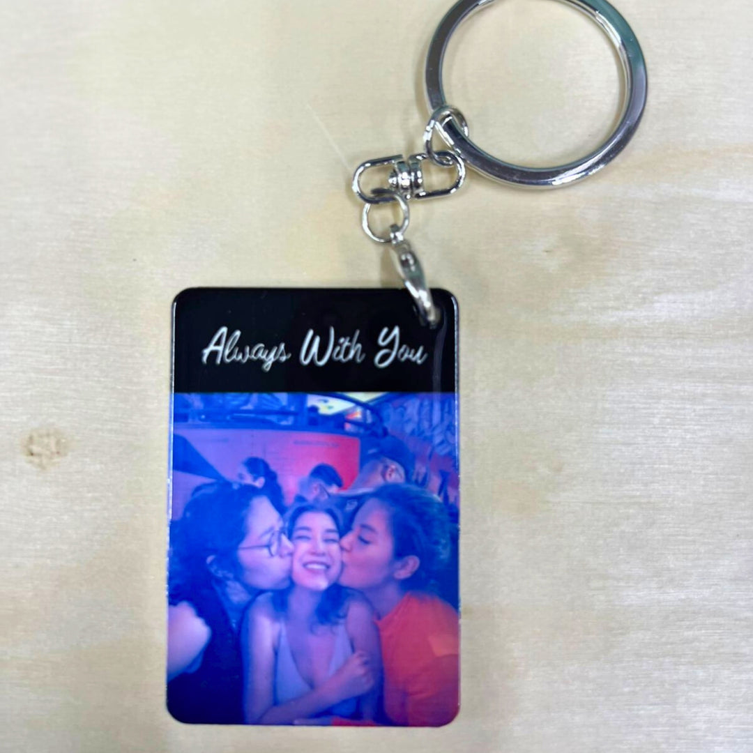 Designed for those who appreciate detail, this premium personalised keychain brings structure and clarity to something small. Framed with a sleek metal border and finished with a refined one-sided print, it keeps your design front and centred.